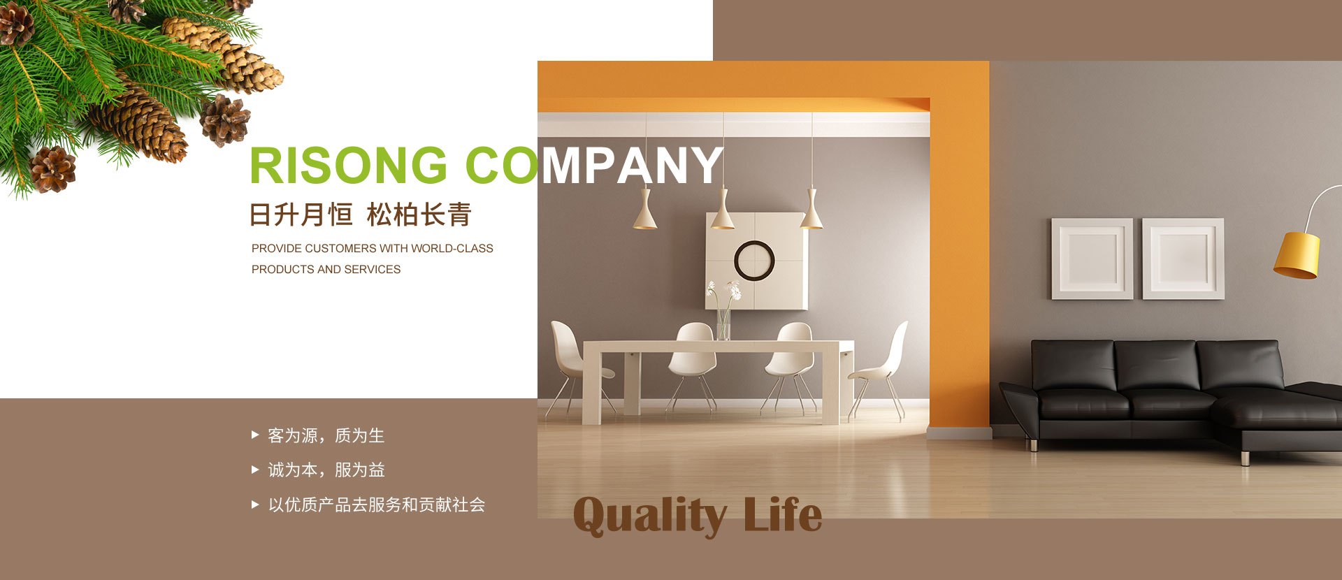 大連日松將一直秉承“以優(yōu)質產品去服務和貢獻社會”的經營宗旨;“客為源,質為生、誠為本、服為益”的經營理念;達到“使用者、銷售者、制造者”三者并存共榮之經營思路;全體日松人將以“熱情、禮貌、快捷、準確”的行動指南,不懈努力的為每一位客戶,提供行業(yè)內一流的高端、環(huán)保、舒適、健康的產品和細節(jié)服務,打造出適合“您”的優(yōu)質家居住宅環(huán)境。
